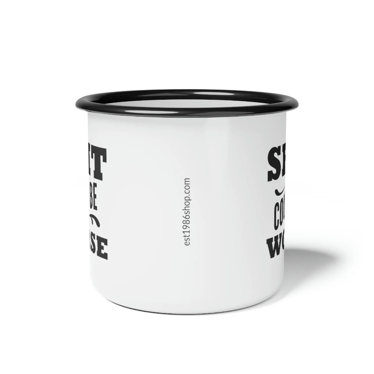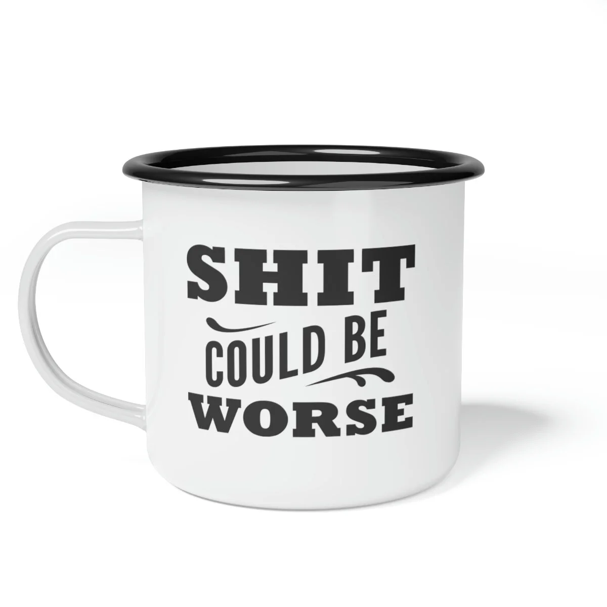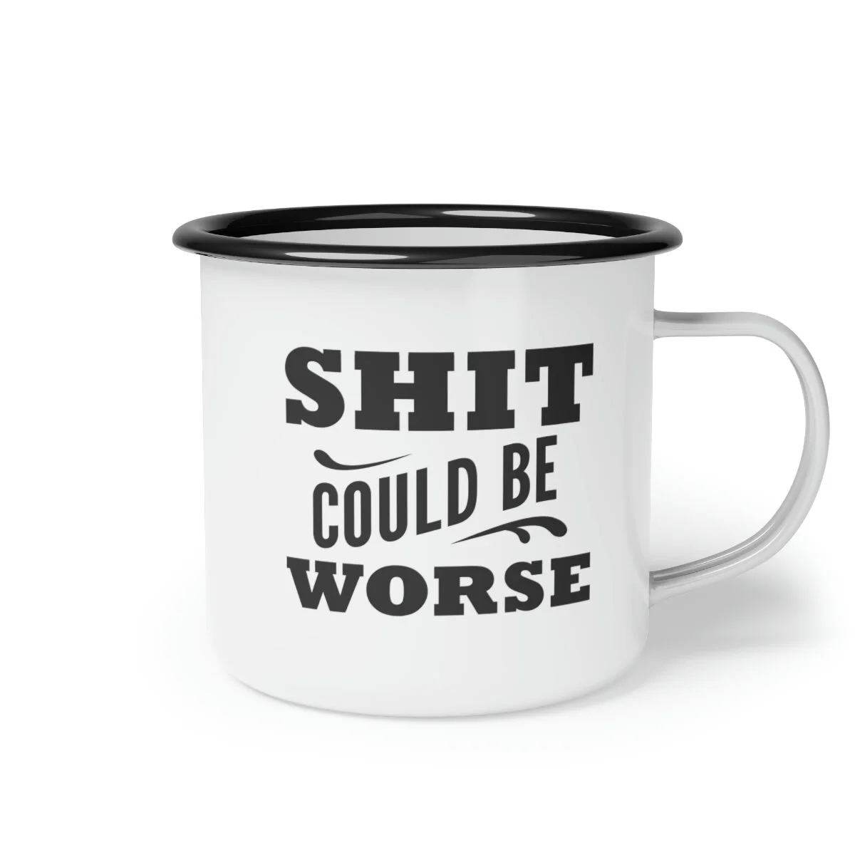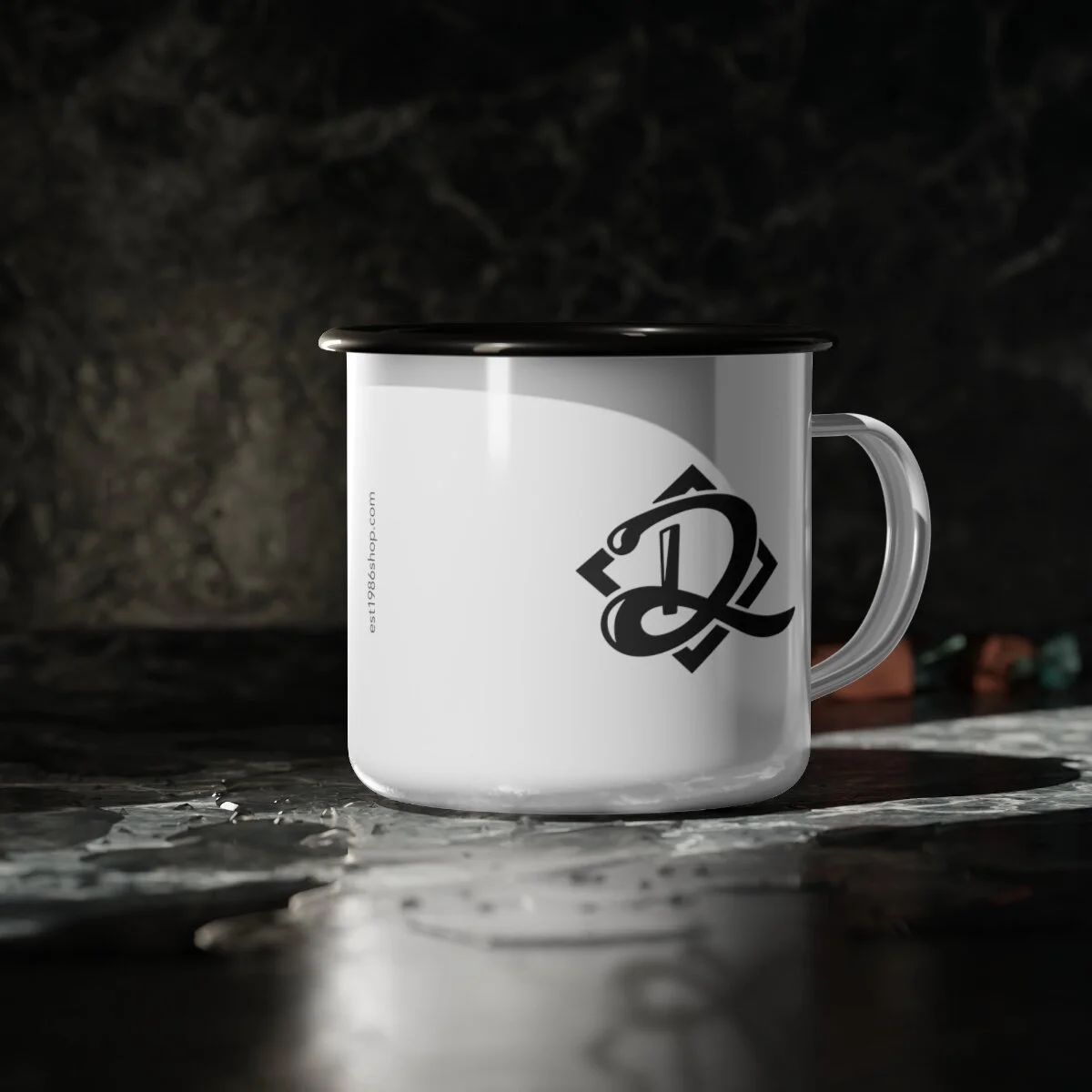 Whether it's whiskey or coffee, this mug is ready for your next camping (or sailing) adventure. This enamel mug is 12oz. and dishwasher safe with a black rim for a unique look. Material: cold-rolled steel plate, with enamel glazed surface One size: 12oz (0.35 l) Glossy finish Dishwasher safe