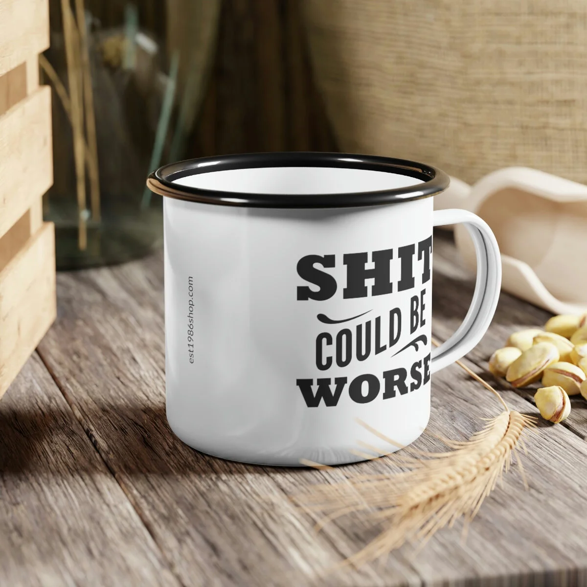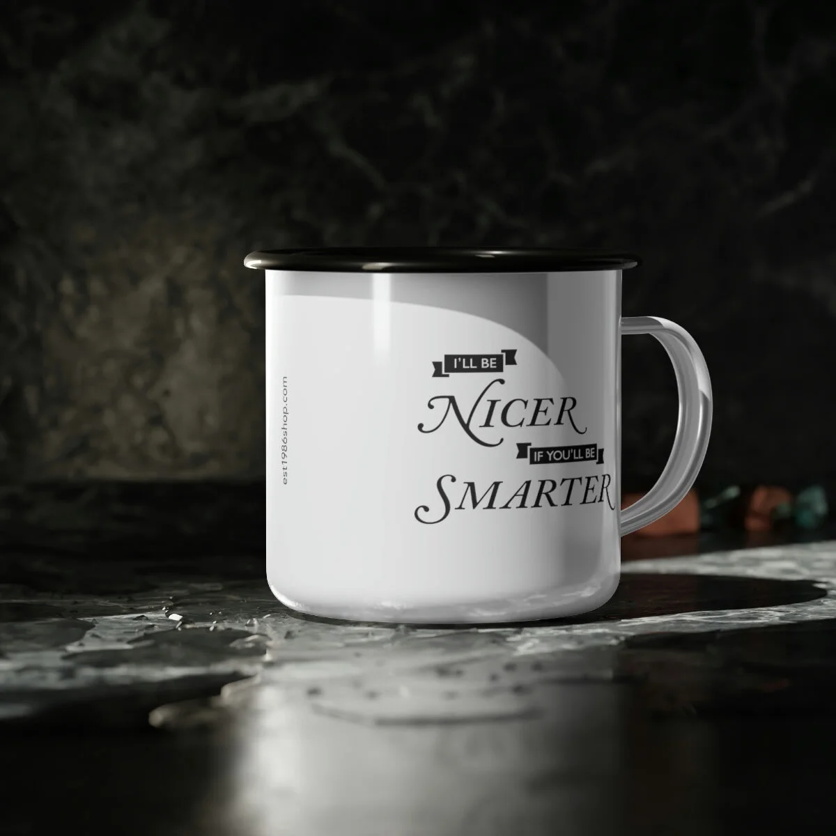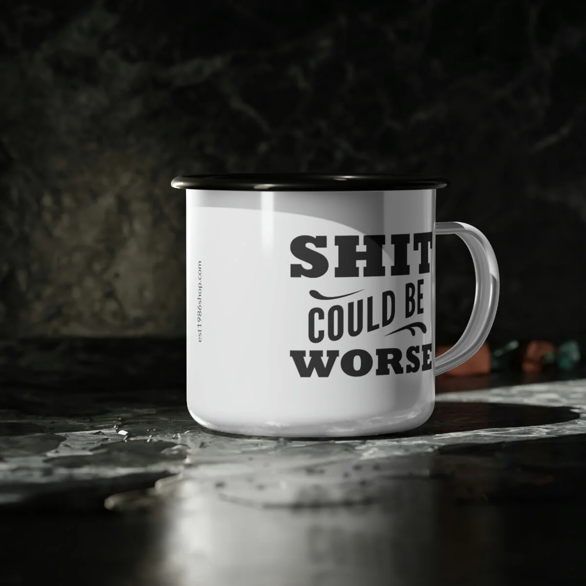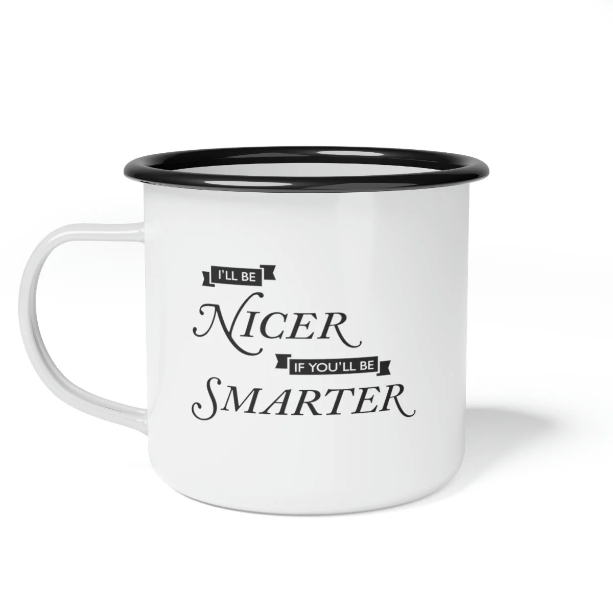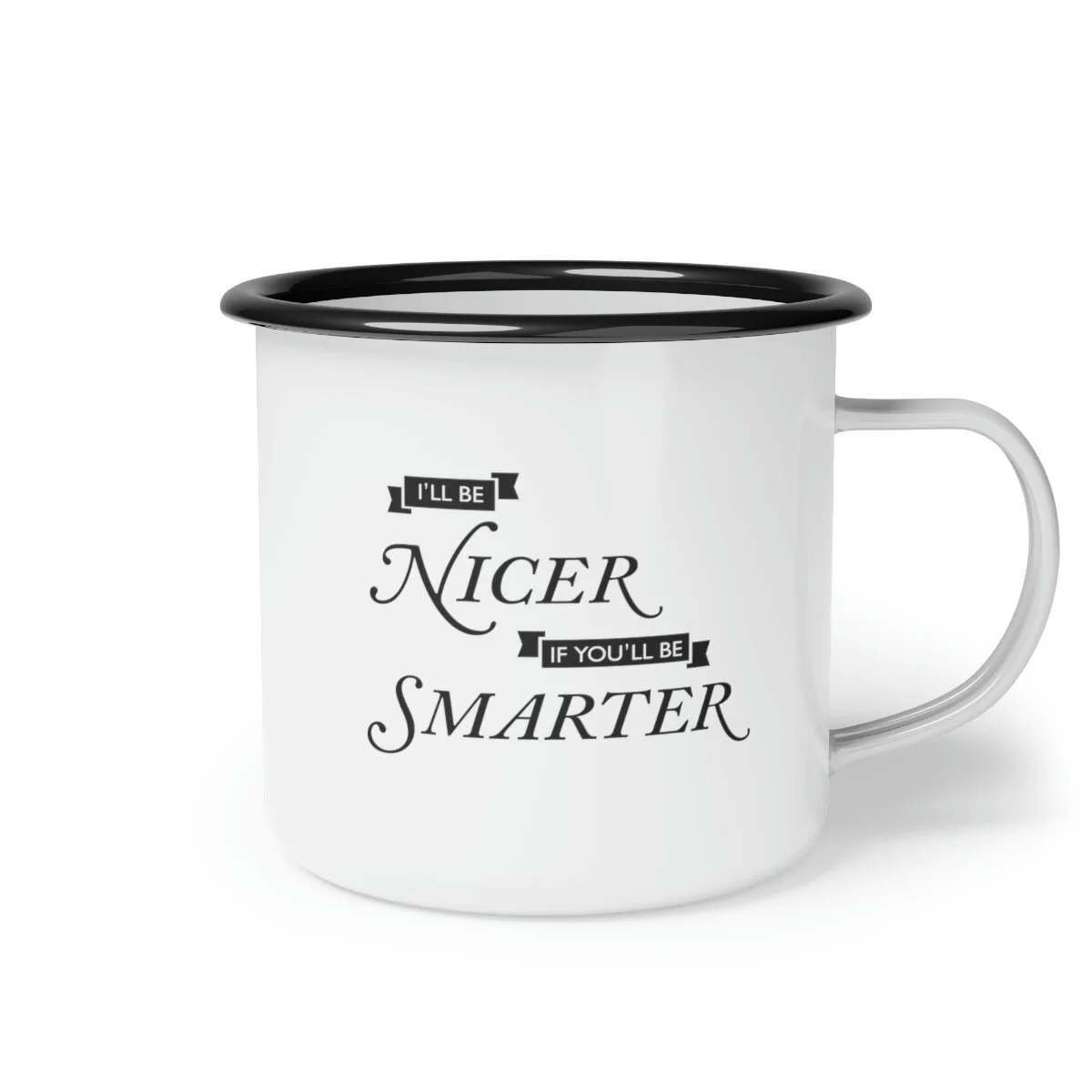 Whether it's whiskey or coffee, this mug is ready for your next camping (or sailing) adventure. This enamel mug is 12oz. and dishwasher safe with a black rim for a unique look. Material: cold-rolled steel plate, with enamel glazed surface One size: 12oz (0.35 l) Glossy finish Dishwasher safe