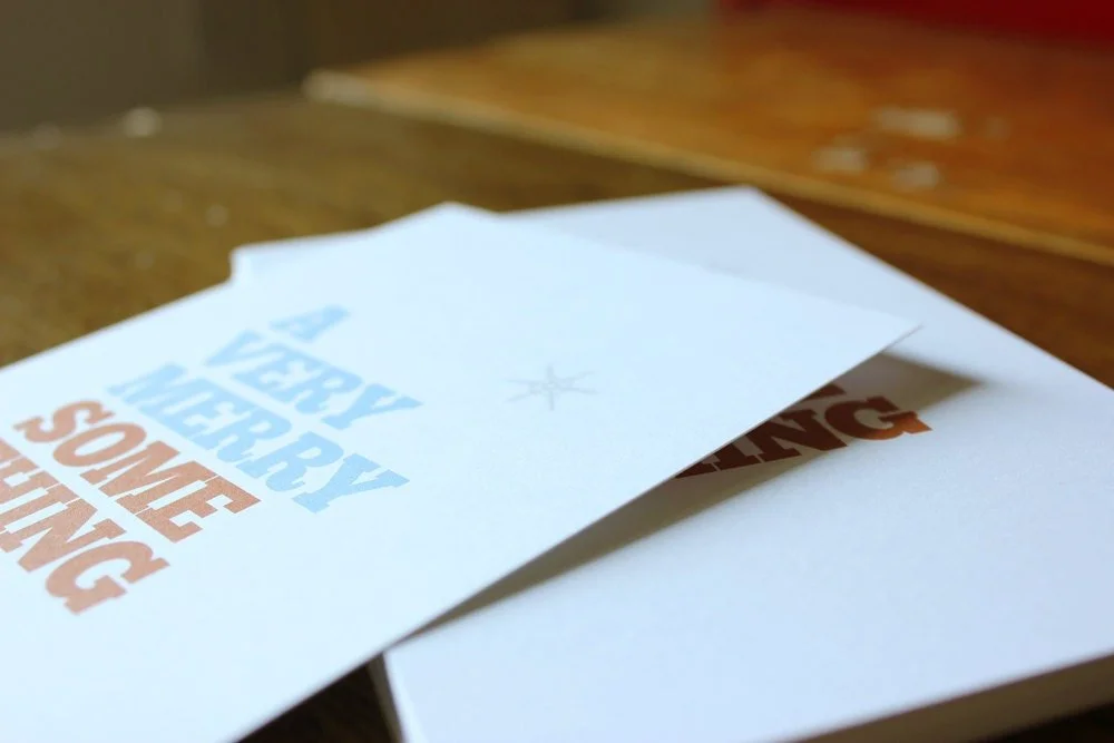 4x6” folded bluebirds card with 100% recycled paper envelope. Card is a 2-process silkscreen print in hand-mixed blue and black ink on 140 lb. Muscletone cardstock from French Paper Co. Inside is blank. Each print is individually pulled by hand and will contain some unique imperfections. Colors may vary.